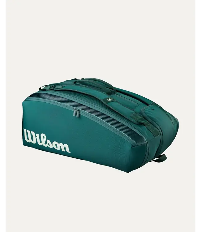 The Blade V10 Super Tour 15 Pack is inspired by the Blade V10's dynamic racket design and features the same vivid green color. The ultimate carryall for avid tennis players, this multifunctional racket bag holds up to 15 rackets, equipment, apparel and other essentials. It has three primary compartments, two of which are lined with Thermoguard material to help protect against changes in temperature. There's a ventilated compartment for shoes and extra pockets on the sides for additional storage. It's equipped with durable carry handles and adjustable ergonomic shoulder straps for easy toting when traveling to and from tournaments.