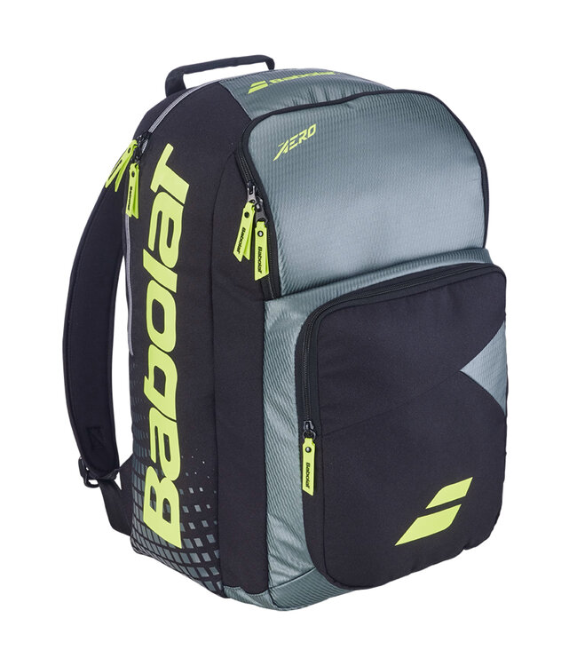 The characteristic pattern of the material reflects the aerodynamic component of the Babolat Pure Aero family.