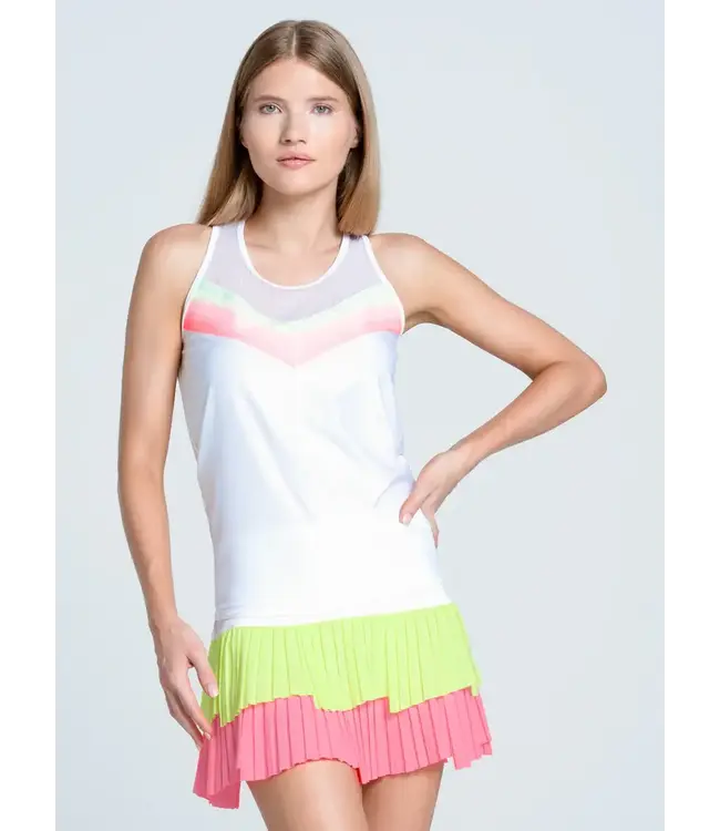 Wear this tank open in the back or tied for a contemporary look. Featuring a modern ombre chevron color block detail and done in our luxurious bird’s eye jacquard performance fabric that creates a subtle shimmer effect.